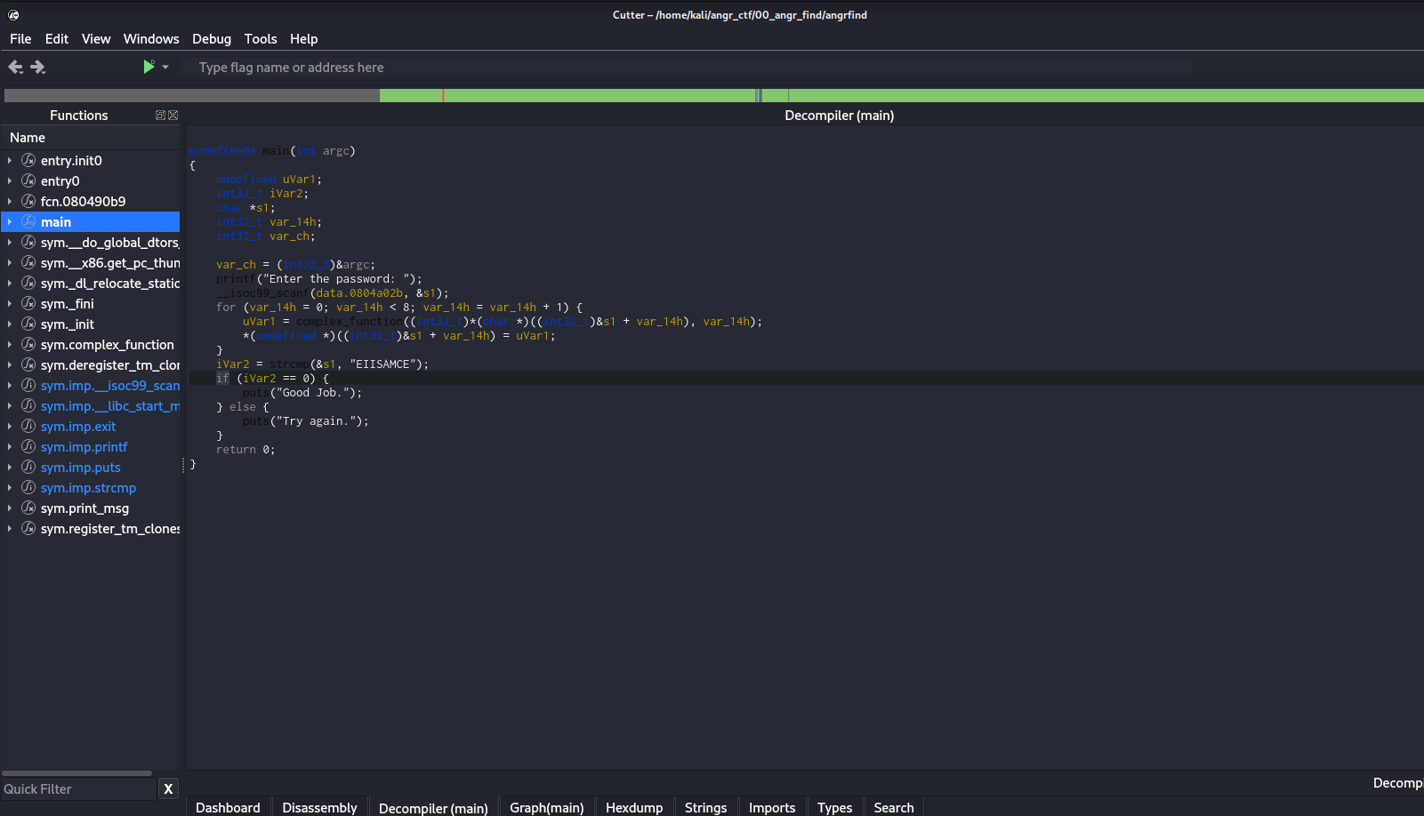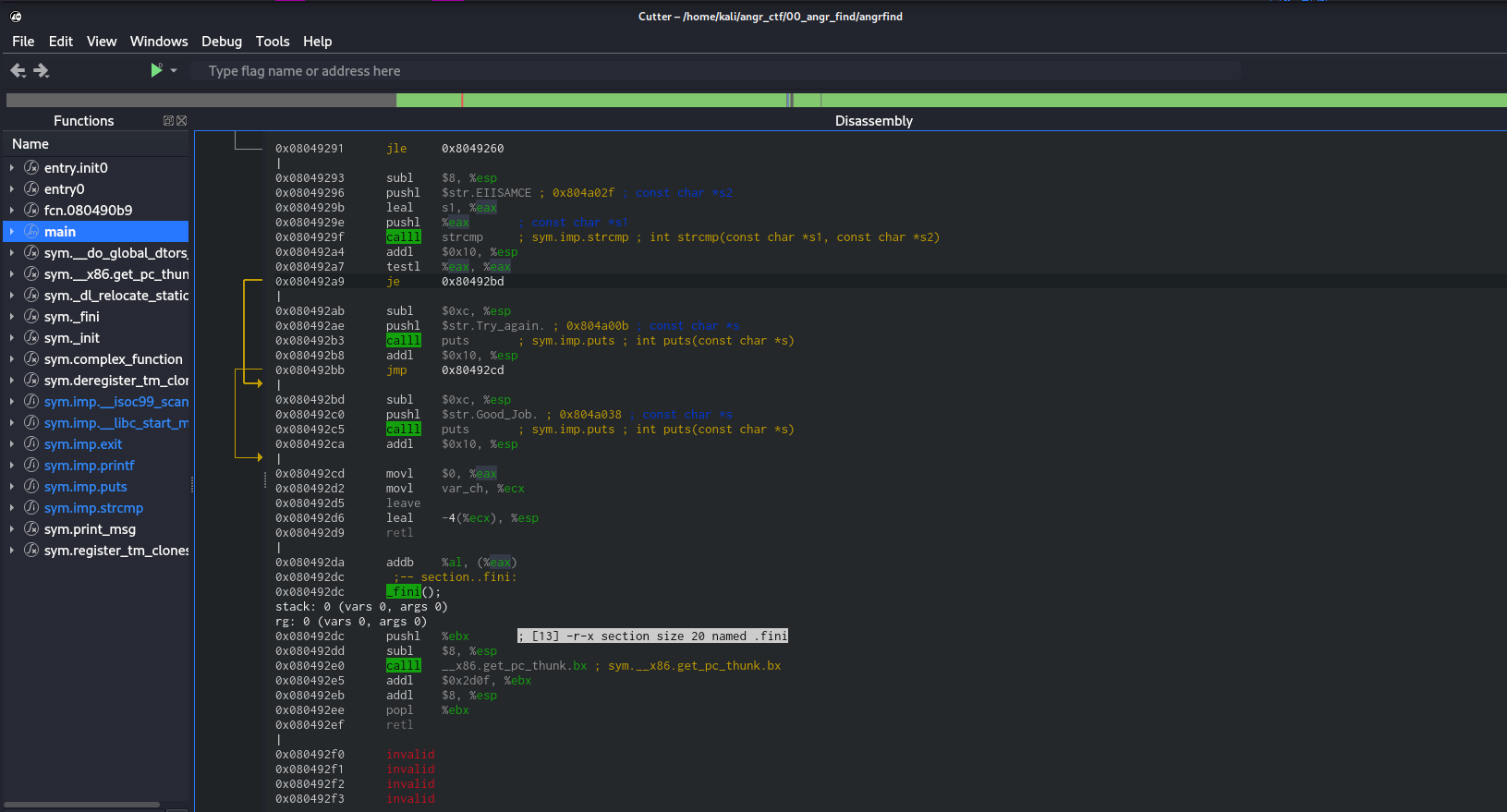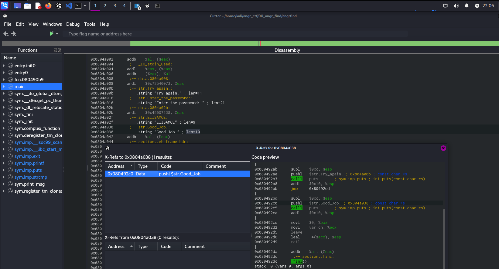 # Explore the binary to attempt to find the address that prints "Good Job."