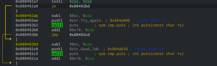 We see our good address is 0x080492bd and the bad address 0x080492ab